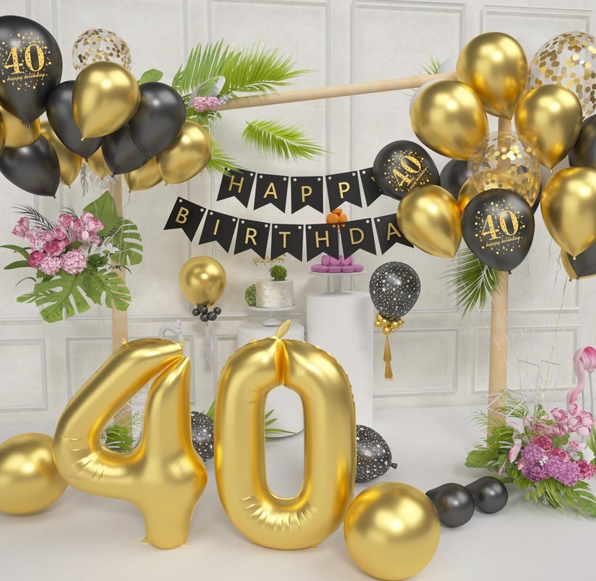 Napisz pierwszą opinię o „Girlanda balonowa xxl balony na 40 urodziny zestaw balonów dekoracji ozdoby girlanda czarno złota xxl 80 el”