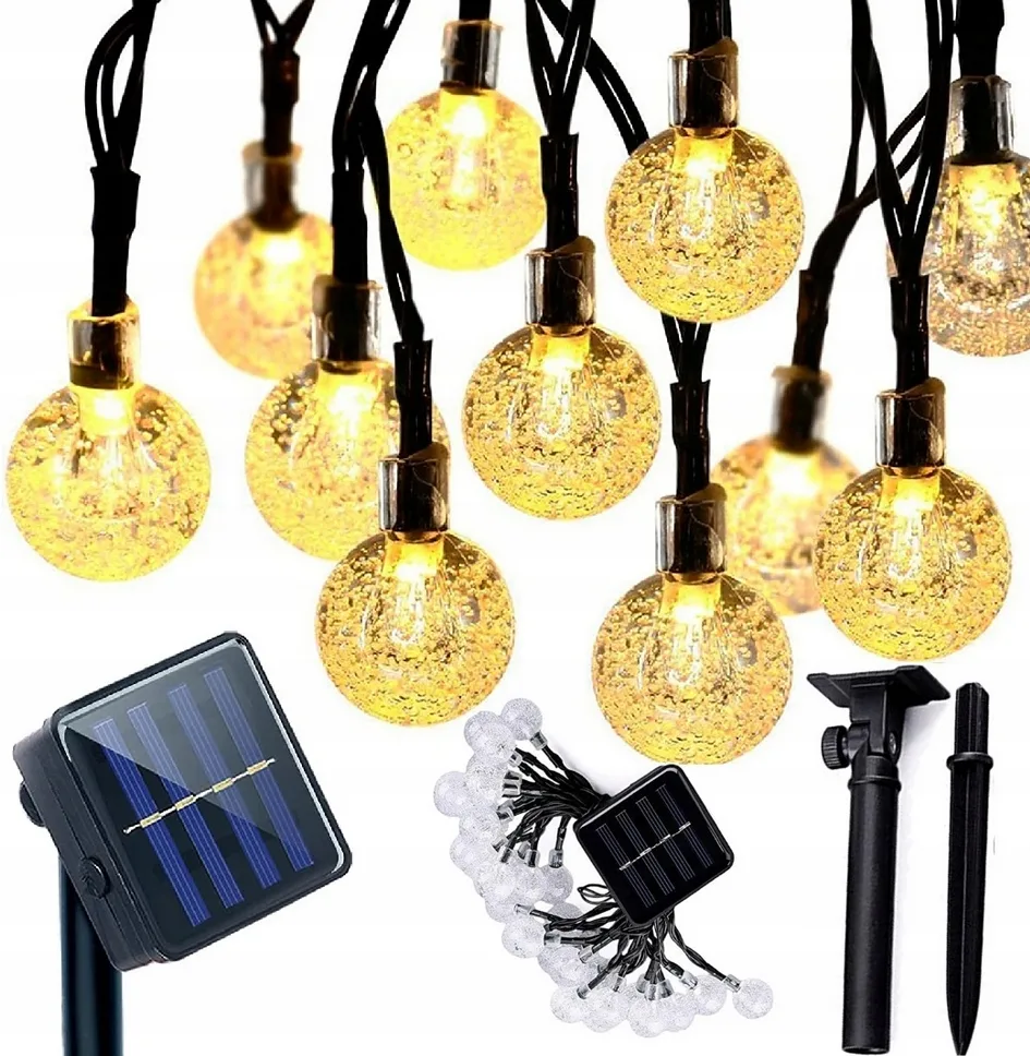 Napisz pierwszą opinię o „Girlanda solarna świetlna lampki ogrodowe żarówki wiszące 4,5m 20 żarówek”
