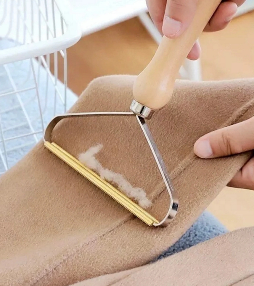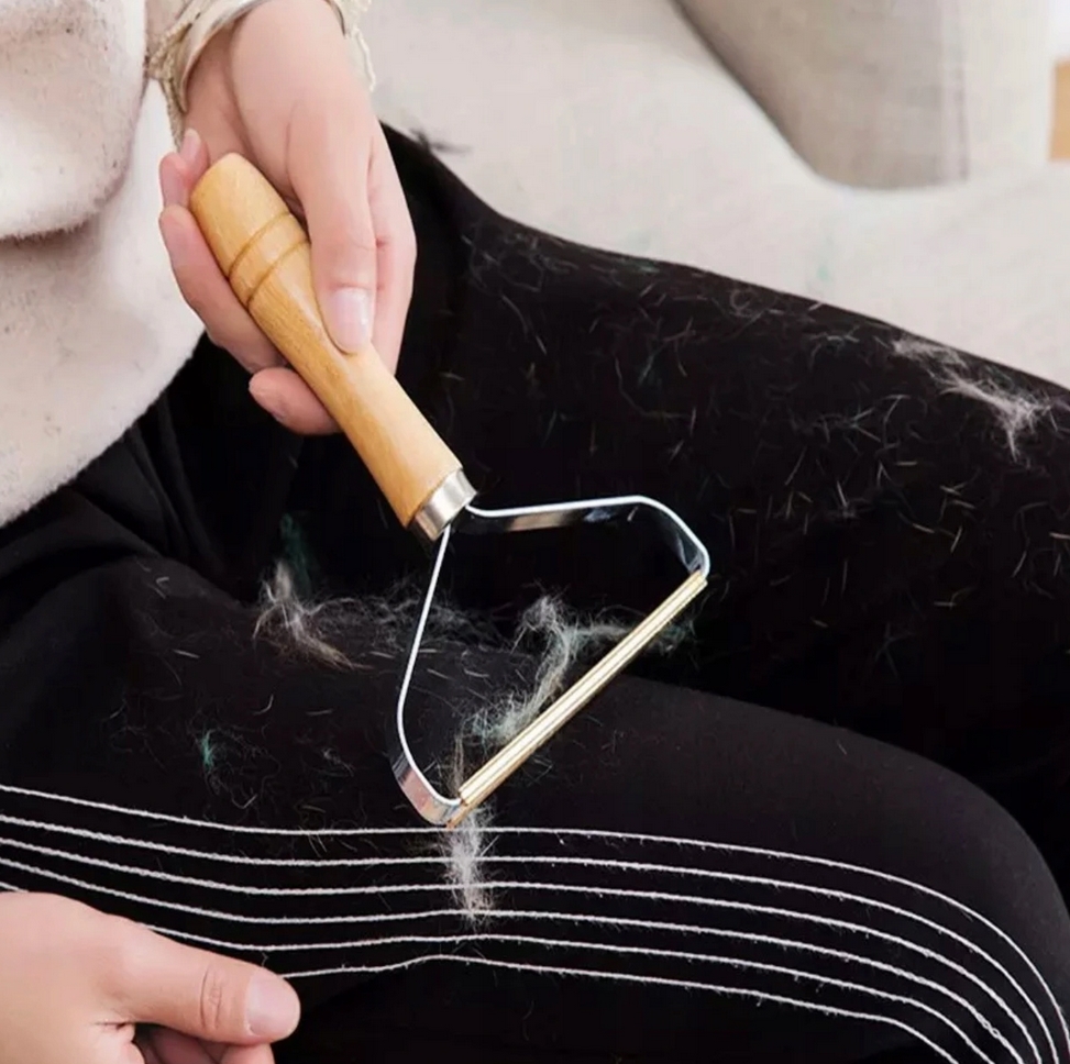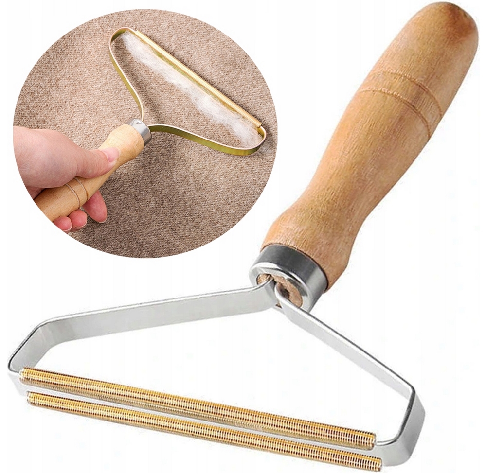 Golarka wyposażona w poręczną, drewnianą rączkę z łatwością usunie zmechacenia powstałe na swetrze, płaszczu czy grubym szaliku dzięki czemu będą wyglądały jak nowe.