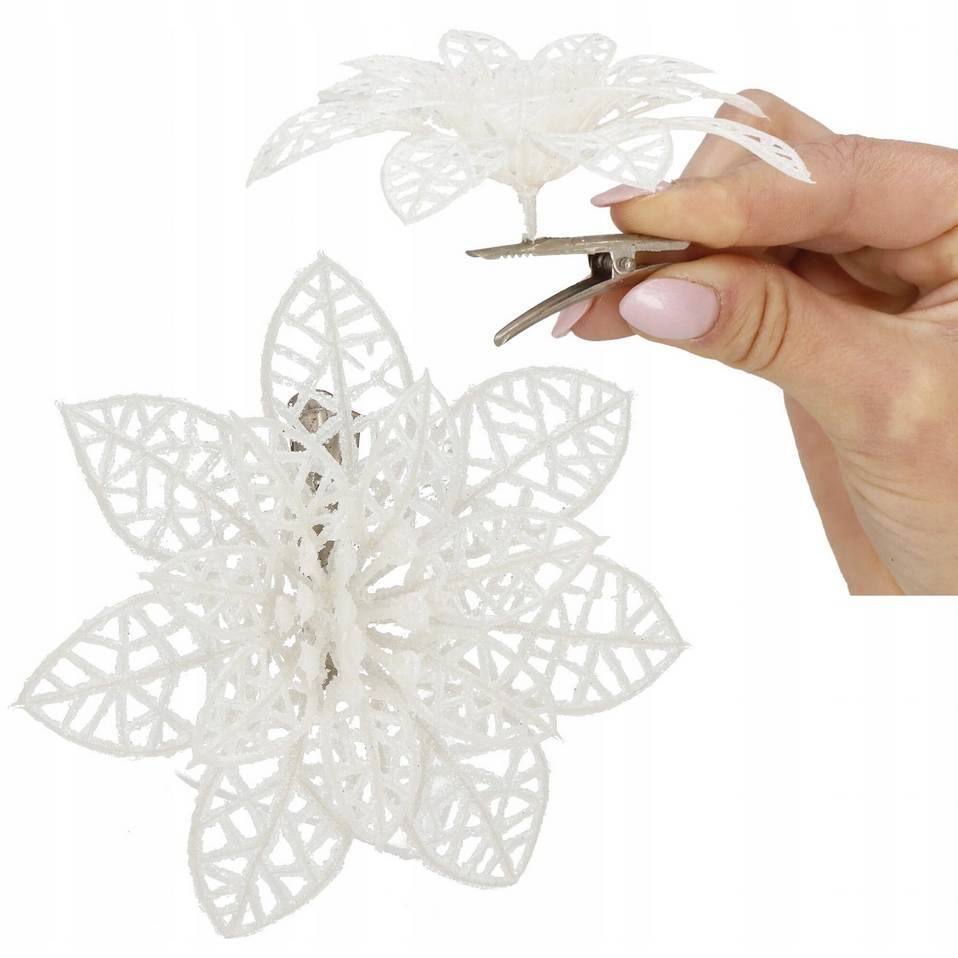 Napisz pierwszą opinię o „Gwiazda betlejemska biała klips sztuczne kwiaty na stroik dekoracja ozdoba świąteczna 10cm 3szt”