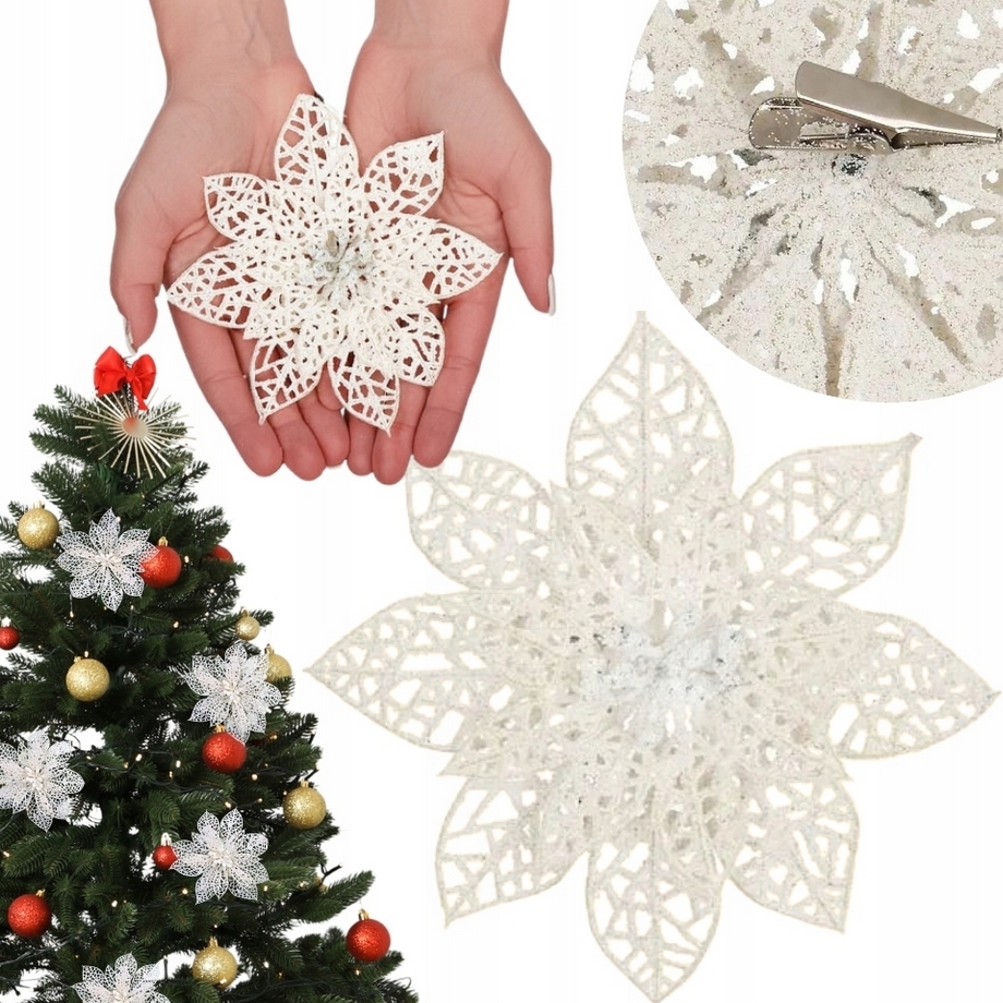 Napisz pierwszą opinię o „Gwiazda betlejemska biała klips sztuczne kwiaty na stroik dekoracja ozdoba świąteczna 14cm 2szt”