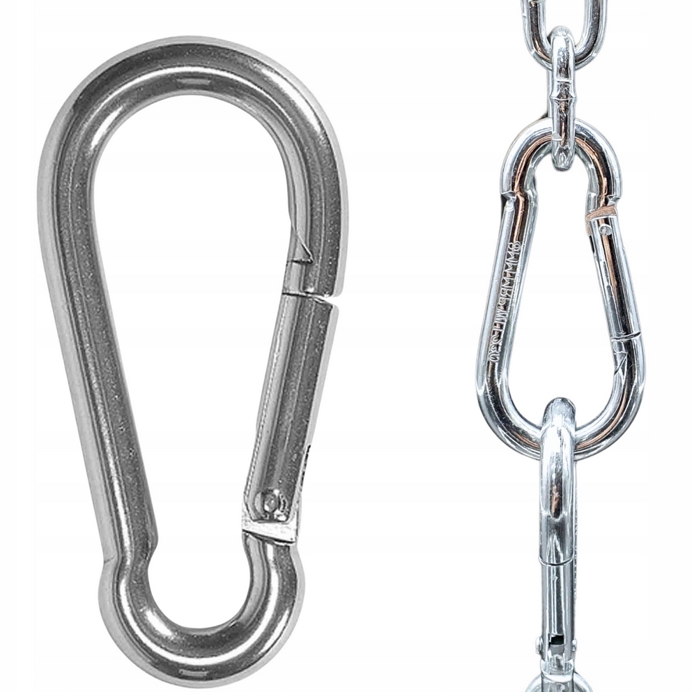 Karabińczyk wykonano ze stali z ocynkiem, co zapewnia wysoką odporność na korozję.