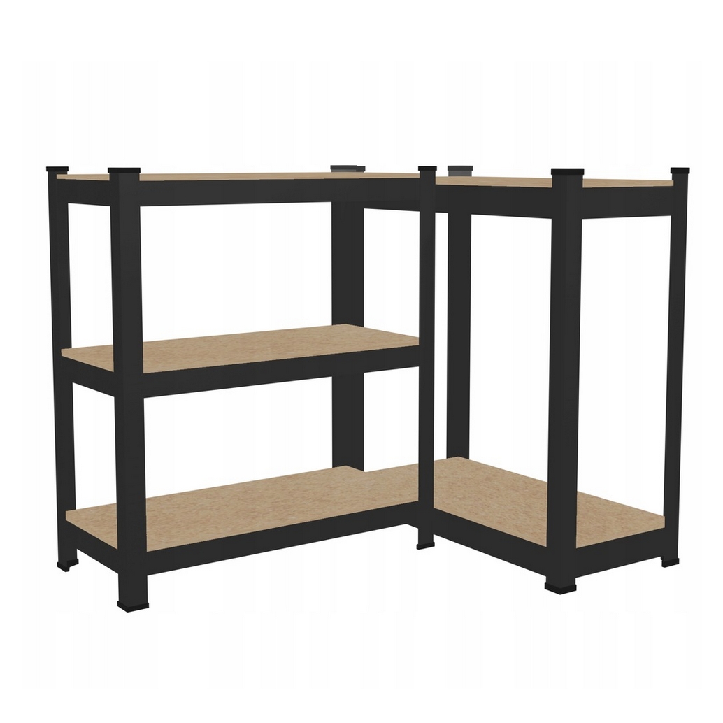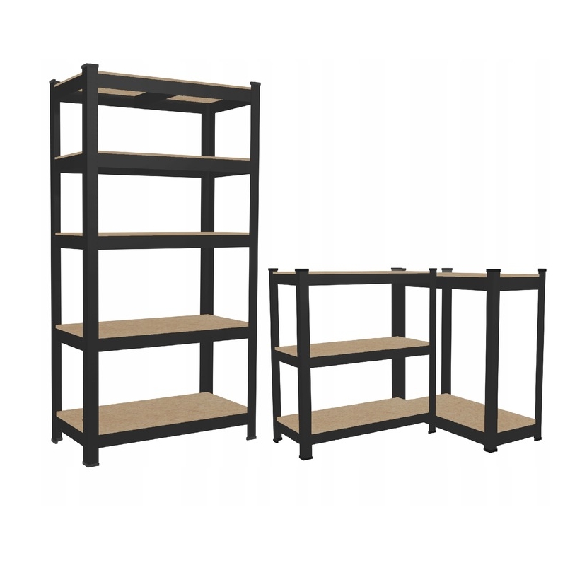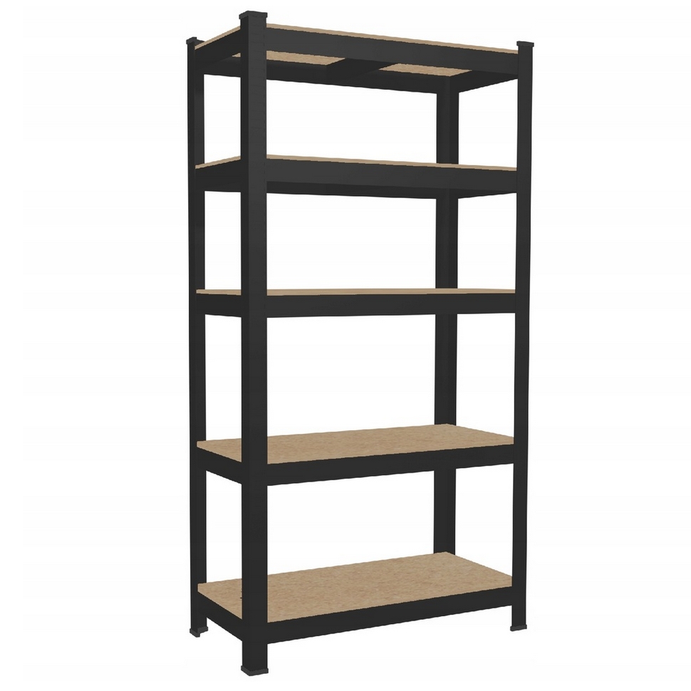 Funkcjonalny i stabilny regał magazynowy w kolorze czarnym, który znakomicie sprawdzi się w garażu, archiwum, sklepie, w schowku na narzędzia, piwnicy.