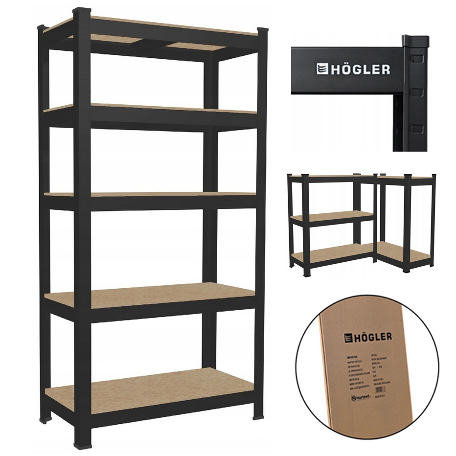 Napisz pierwszą opinię o „HÖGLER Regał metalowy magazynowy garażowy czarny 5 półek 875kg 180x90x30”