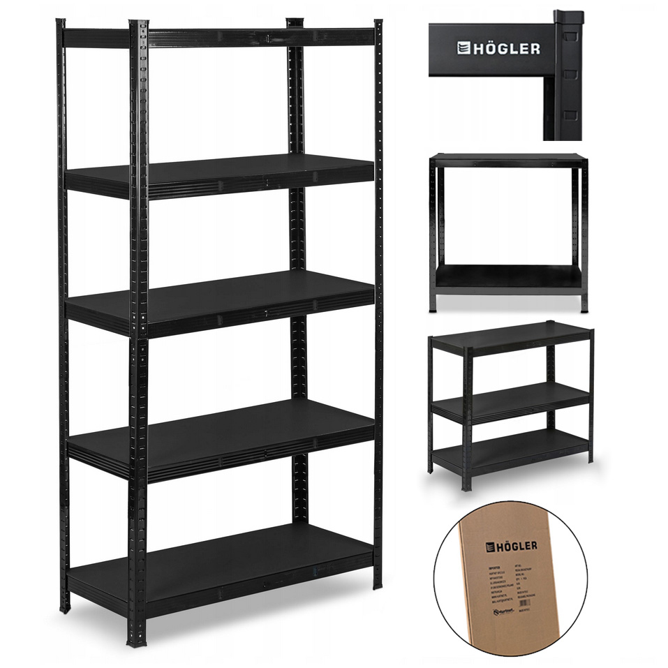 Napisz pierwszą opinię o „HÖGLER Regał metalowy magazynowy garażowy czarny all black 5 półek 875kg 180x90x40”