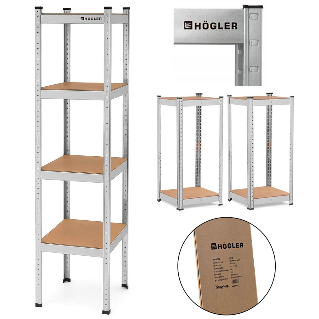 Napisz pierwszą opinię o „HÖGLER Regał metalowy magazynowy garażowy srebrny 4 półki 180x40x40”