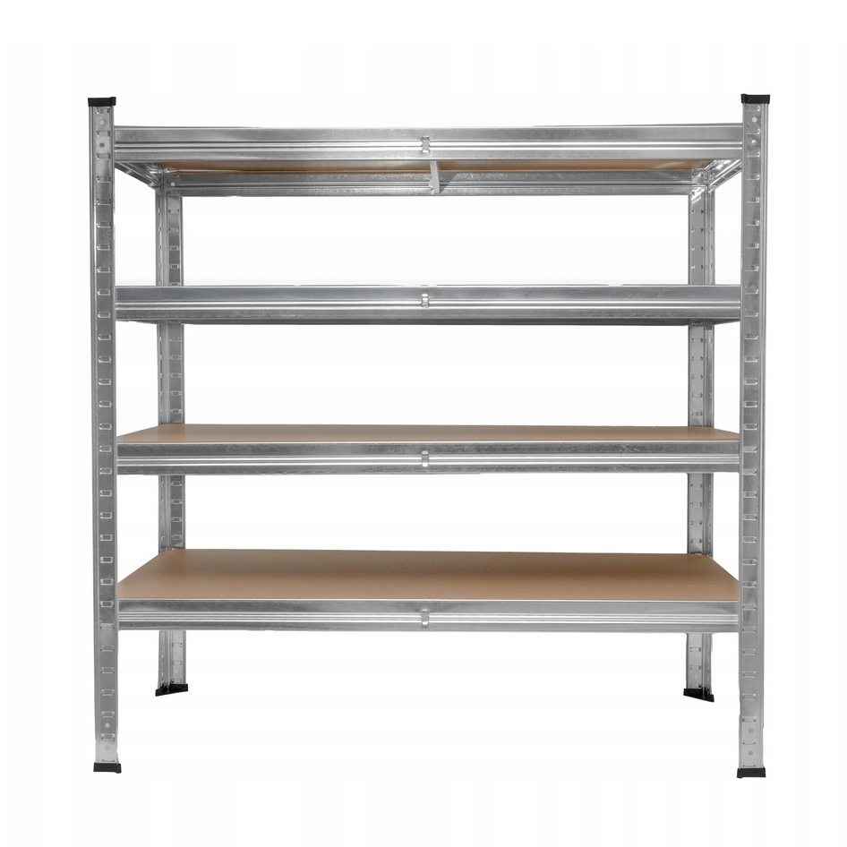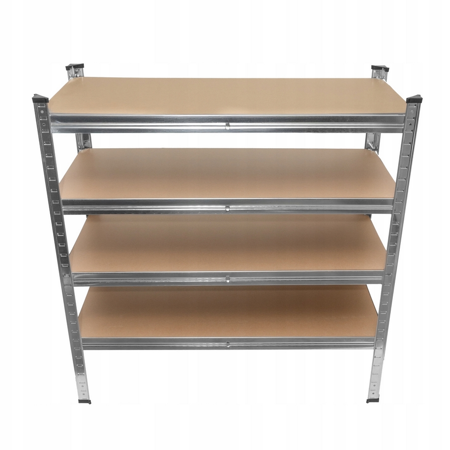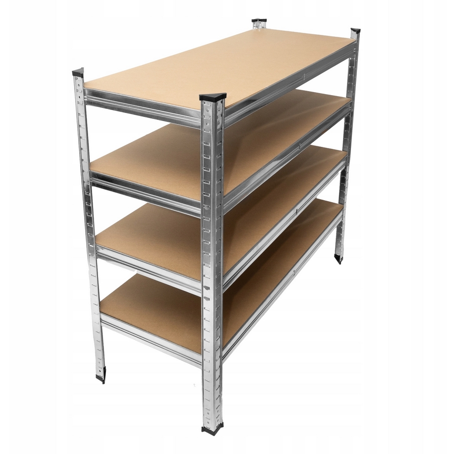 Regał składa się z 4 półek, na których można ułożyć produkty, kartony, czy też urządzenia.
