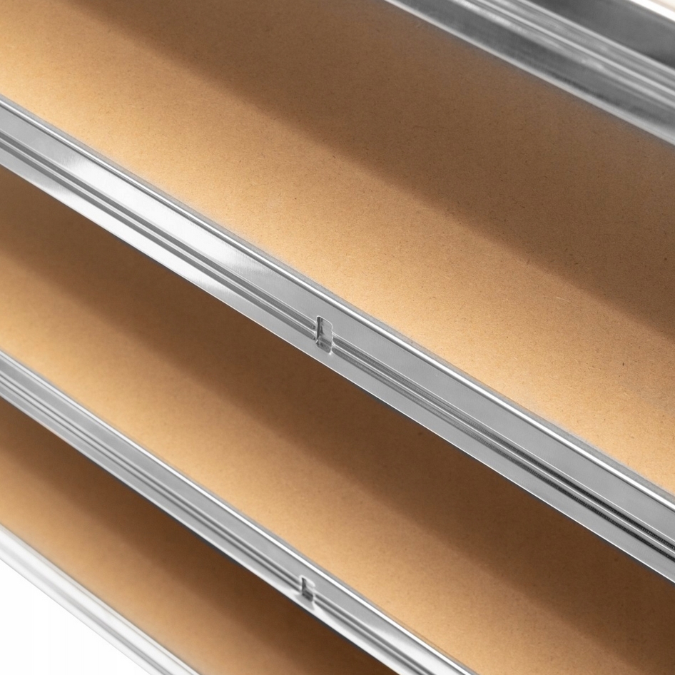 Zaokrąglone krawędzie wykluczają możliwość skaleczenia się podczas użytkowania regału.