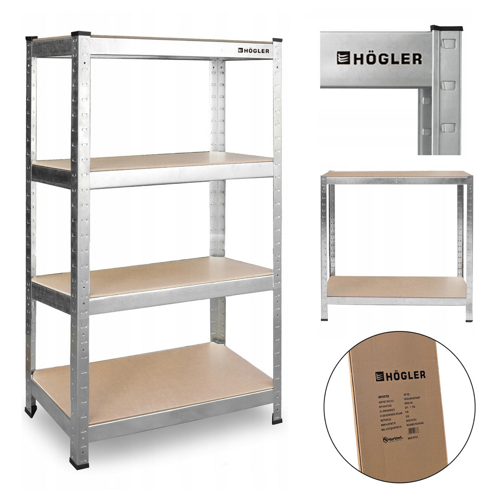 Napisz pierwszą opinię o „HÖGLER Regał metalowy magazynowy garażowy srebrny 4 półki 600kg 180x90x40”