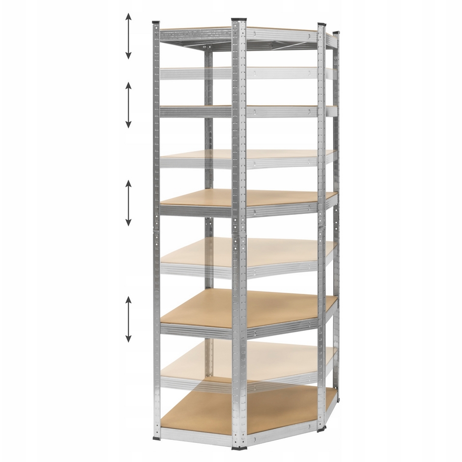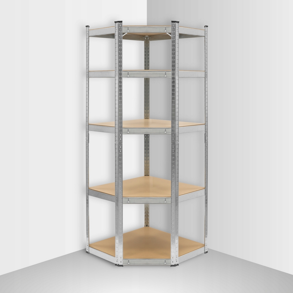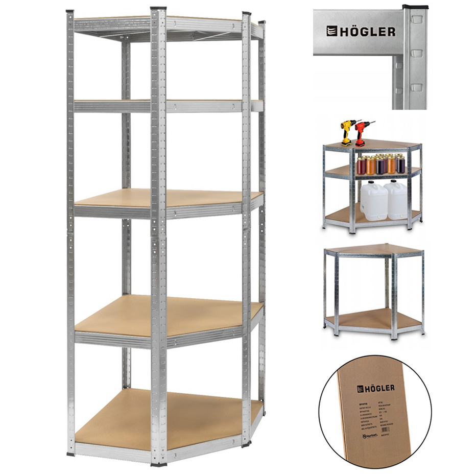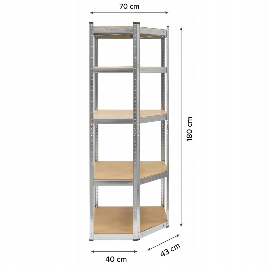 Napisz pierwszą opinię o „HÖGLER Regał metalowy magazynowy narożny garażowy srebrny 5 półek 875kg 180x70x40”