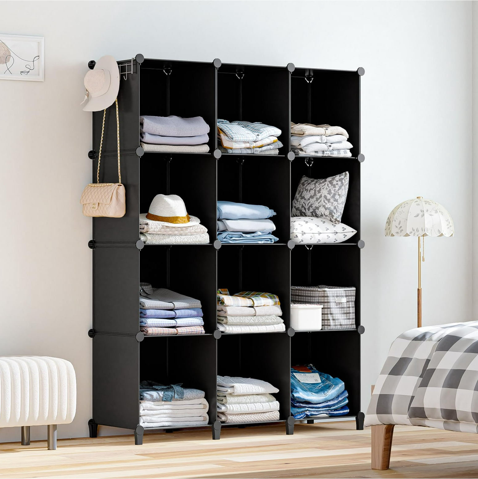 Szafa modułowa szafka regał meble garderoba półki półka szafa na buty czarna pojemna duża 12 modułów ELEGANCE