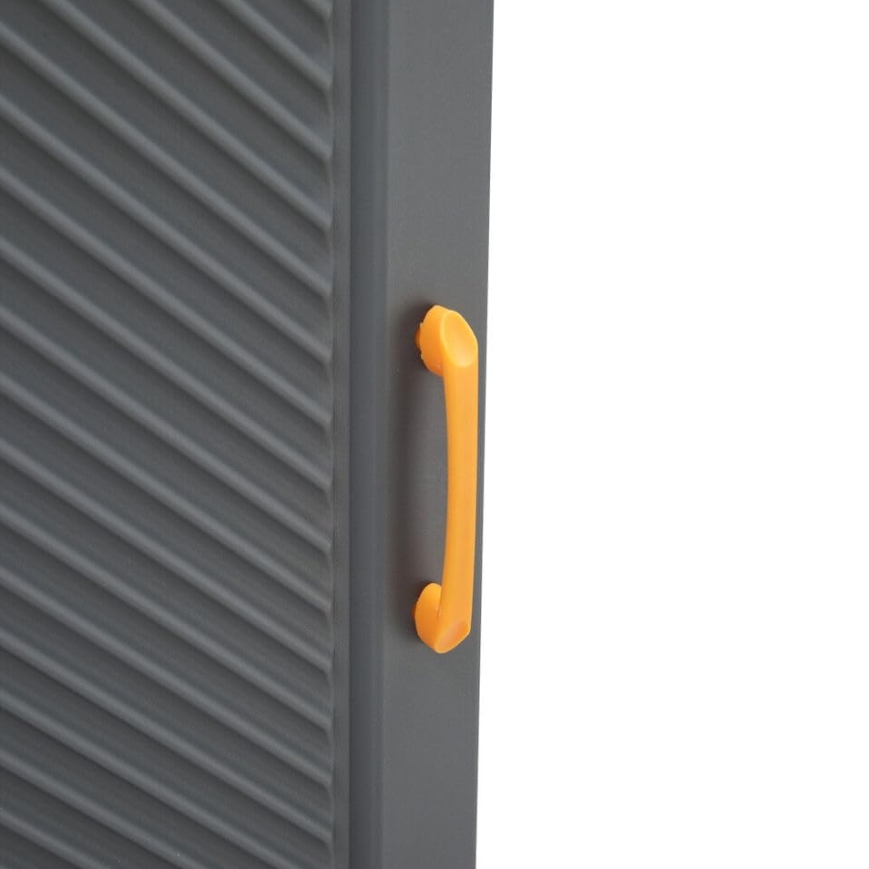 Posiada zamykane drzwiczki, które chronią od kurzu i wizualnie porządkują przestrzeń.