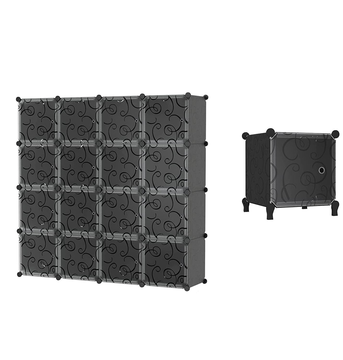 Szafa modułowa szafka regał meble garderoba półki półka szafa na buty czarna pojemna duża 16 modułów