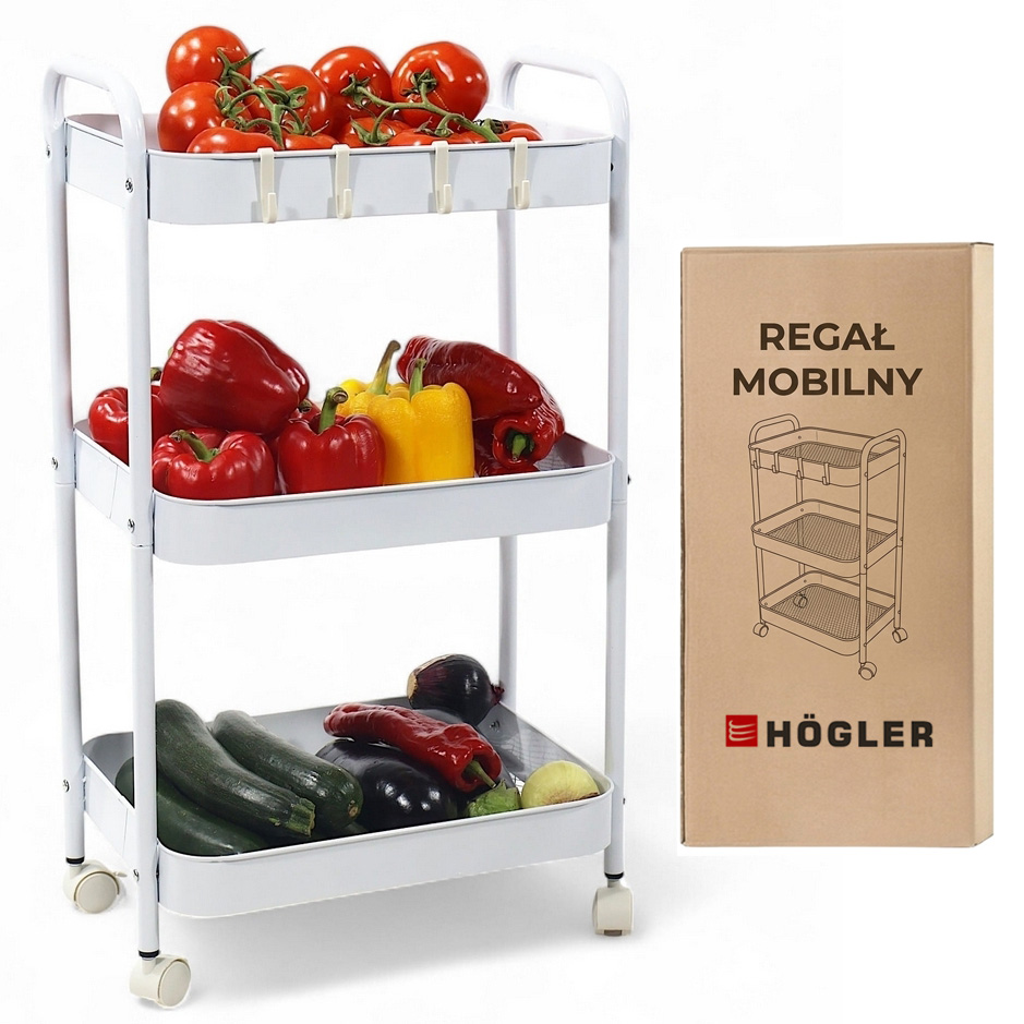 HÖGLER Wózek kuchenny łazienkowy metalowy wielofunkcyjny na kółkach szafka mobilna + haczyki
