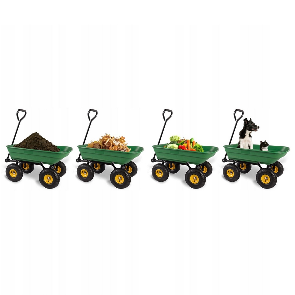 Łączy w sobie funkcję wózka, taczki i wywrotki, co czyni go niezwykle uniwersalnym.