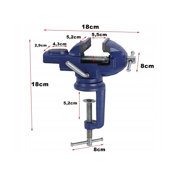 Konstrukcja imadła umożliwia dowolne ustawienie w zakresie 360 stopni bez konieczności odkręcania podstawy od blatu.