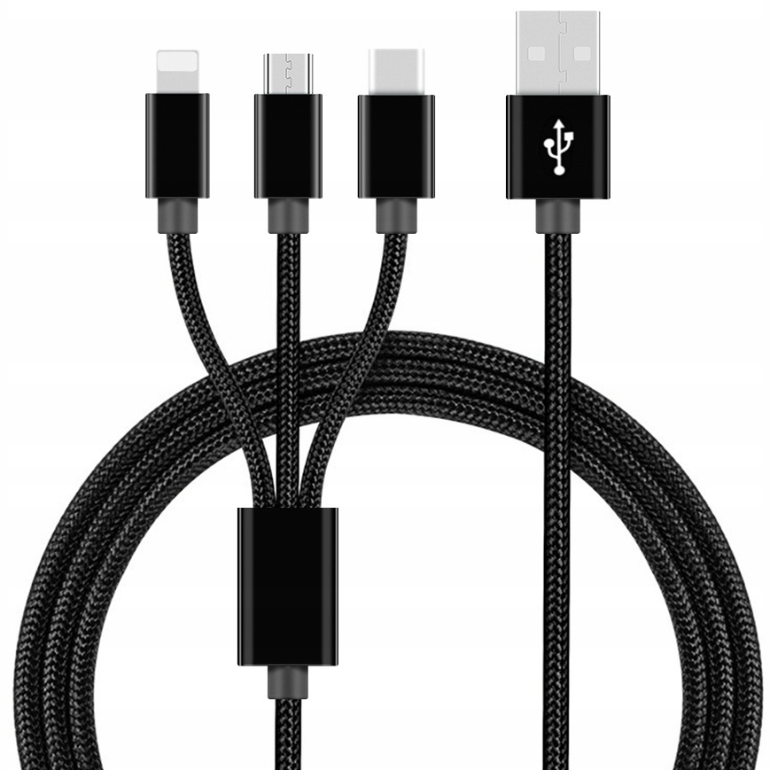 KABEL DO TELEFONU 3w1 MICRO USB USB-C Lightning 120cm