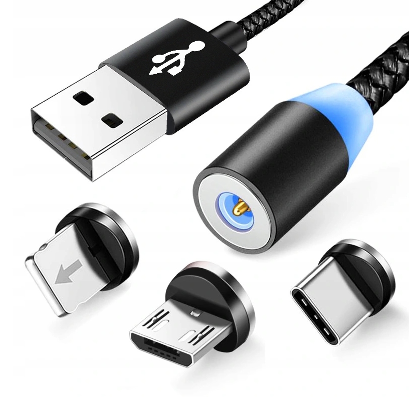 Kabel magnetyczny 3w1 micro-usb typ-c usb-c iphone lightning