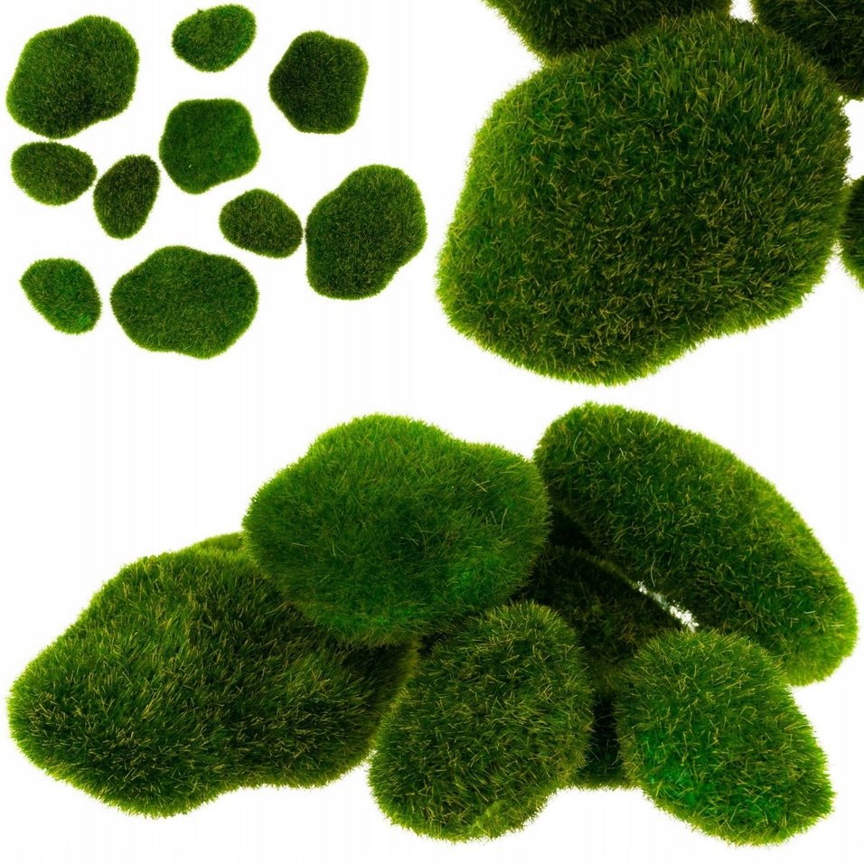 Kamienie kamyki omszałe z mchu mech dekoracyjne do stroika ozdoba 10szt