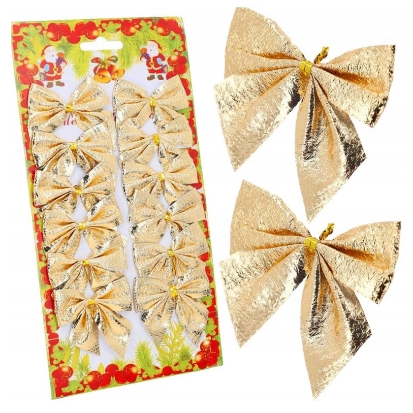 Kokardki złote kokardy ozdoba świąteczna na choinkę choinka zestaw 12szt