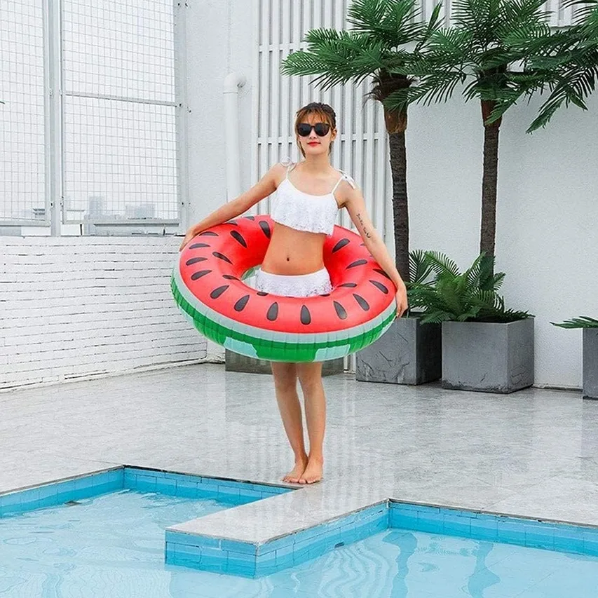 Koło dmuchane do pływania w kształcie arbuza, wykonane z wysokiej jakości tworzywa sztucznego gwarantuje wytrzymałość.
