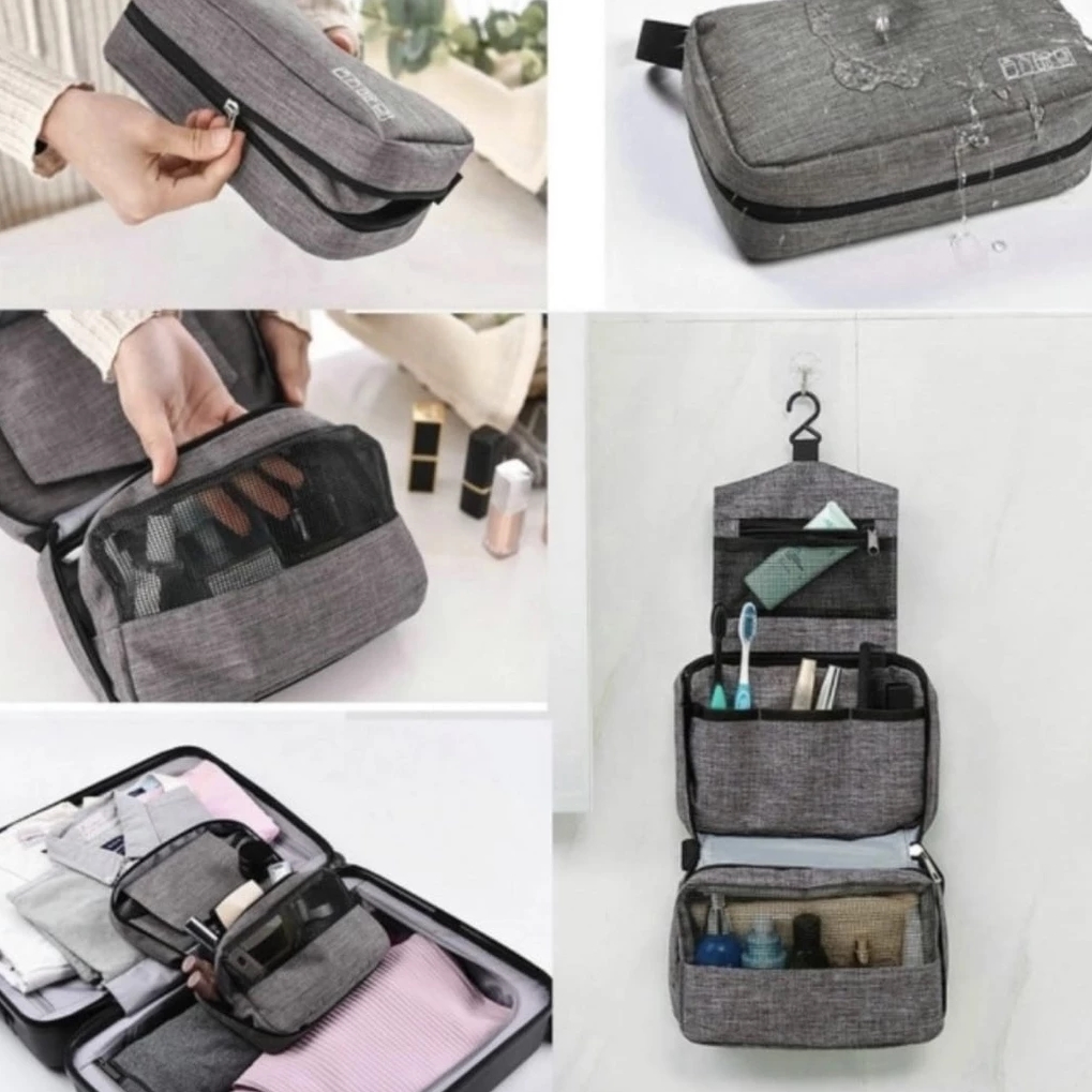 Wisząca kosmetyczka sprawdzi się podczas wyjazdów wakacyjnych, delegacji, na kempingu czy biwaku.