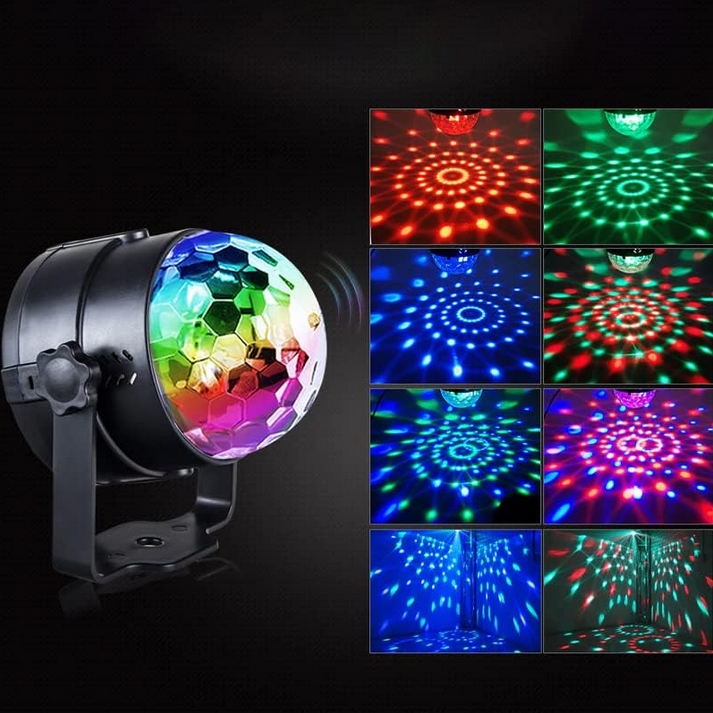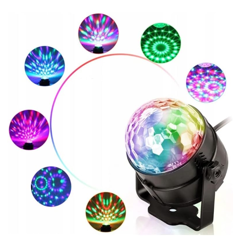 Kula została wyposażona w czujnik dźwięku, zatem efekty świetlne pojawiają, poruszają, zmieniają się i znikają w rytm muzyki.