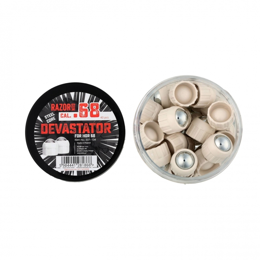 RazorGun Steel Core Devastator w kalibrze .68 cala (17,2 mm) to specjalna amunicja przeznaczona do broni pneumatycznej w kalibrze .68 cala.