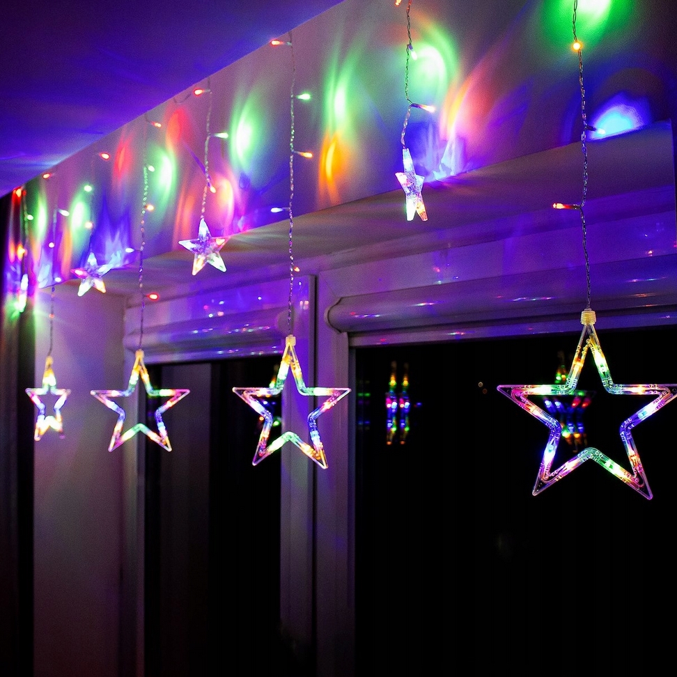 Kurtyna świetlna LED o długości 3 metrów, wyposażona w 8 trybów świecenia, o barwie świetlnej multikolor.