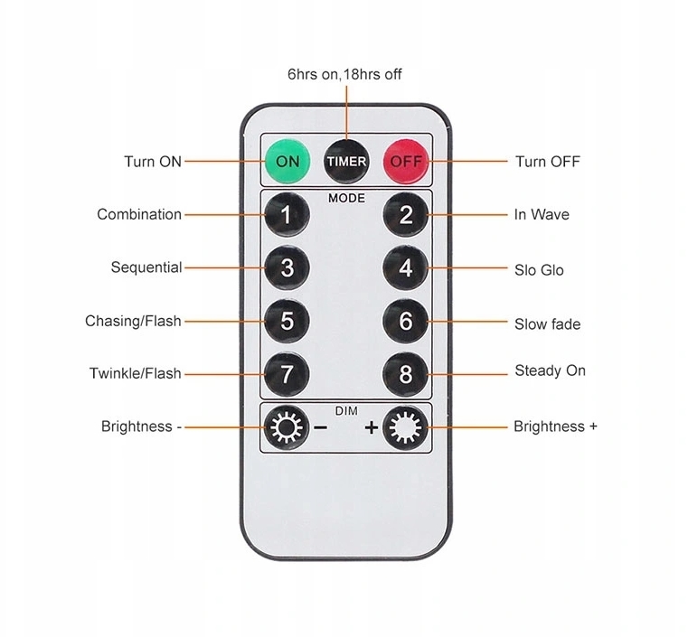 Światła włączają się 6 godzin i wyłączają na 18 godzin automatycznie po naciśnięciu przycisku „TIMER”.