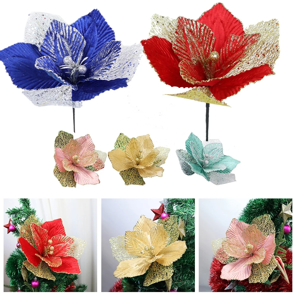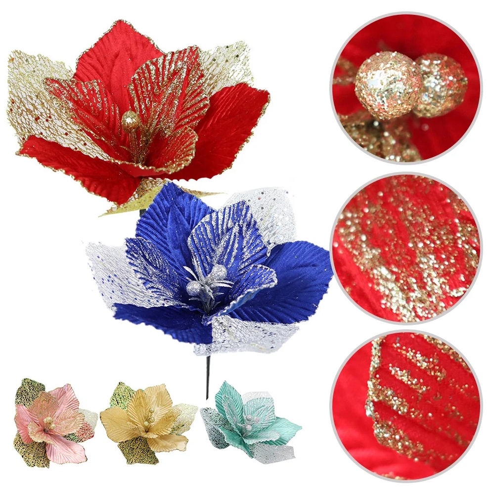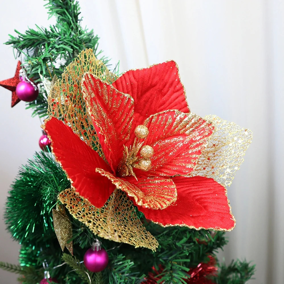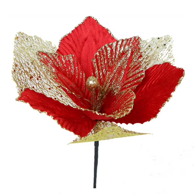 Kwiaty na stroik gwiazda betlejemska bukiet sztuczna poinsecja dekoracja ozdoba świąteczna 34cm