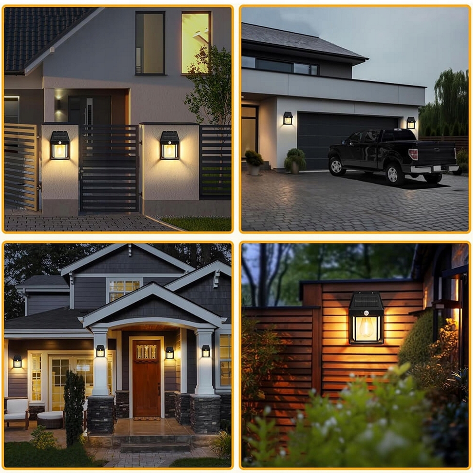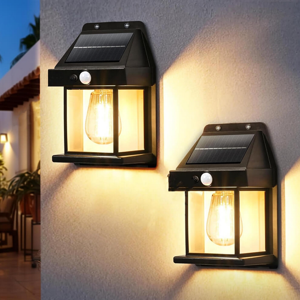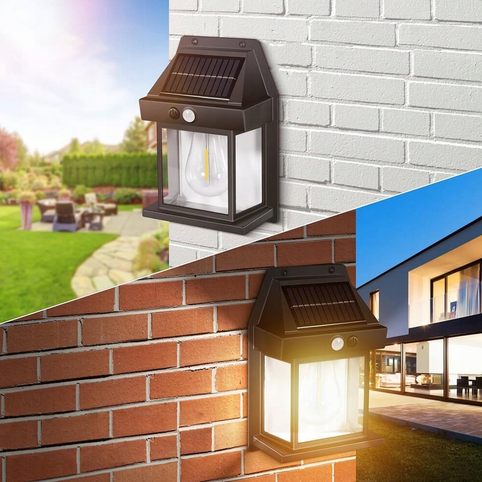 Lampa solarna led latarnia kinkiet ścienny z czujnikiem ruchu i zmierzchu