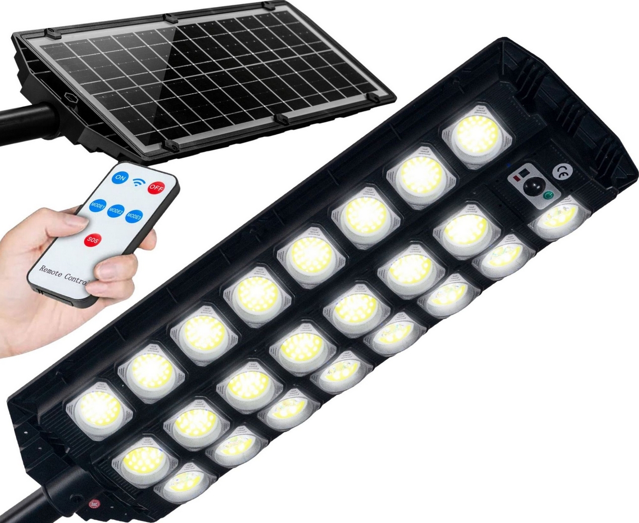 Lampa solarna oprawa uliczna panel pilot czujnik ruchu zmierzchu 2000W