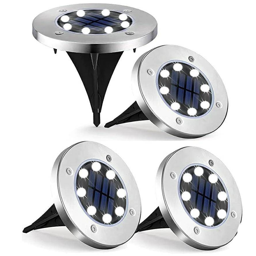 Lampa solarna wbijana ogrodowa najazdowa led gruntowa srebrna zestaw 4szt