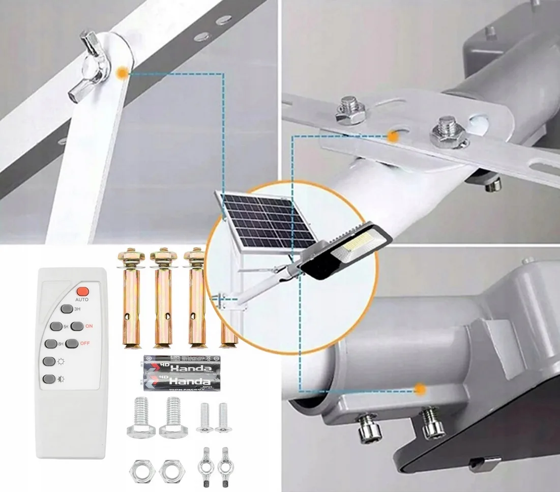 Lampa uliczna solarna 1200 led latarnia panel uchwyt pilot ip66 2000w
