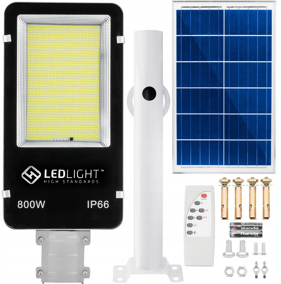 Lampa uliczna solarna 500 led panel uchwyt pilot premium ip66 800w