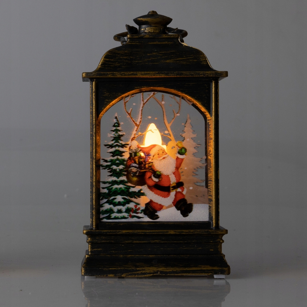 Najważniejszym elementem tej latarenki jest kolorowy witraż prezentujący urocze, świąteczne motywy, takie jak choinka, bałwan, gwiazdki i renifer.