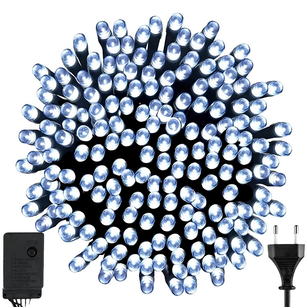 Napisz pierwszą opinię o „Lampki choinkowe 200 led wewnętrzne programator 8 trybów biały zimny 16m premium”