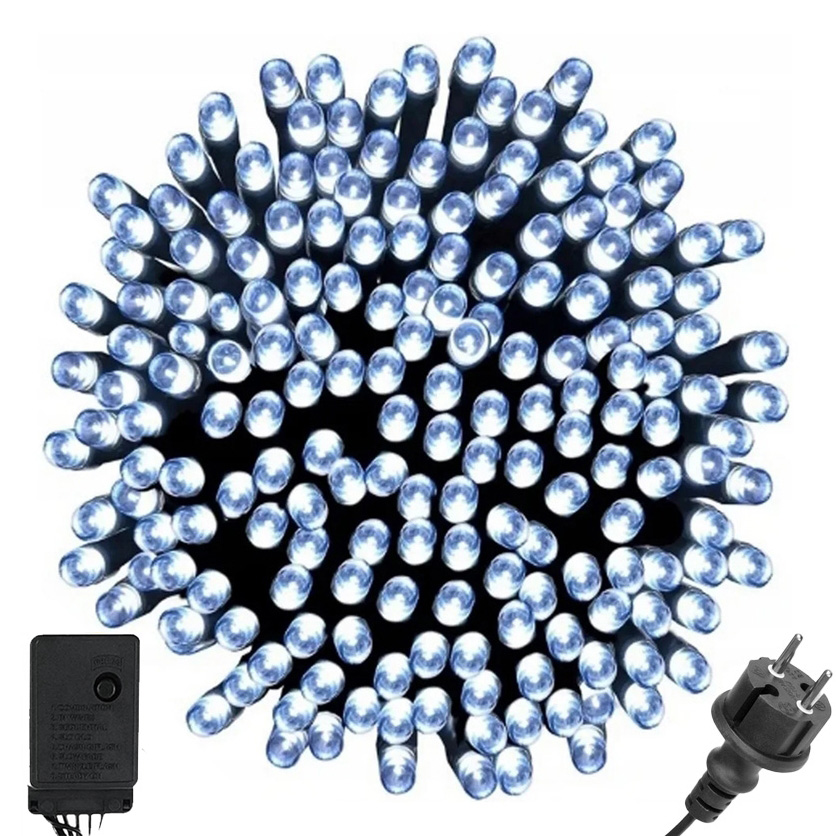 Lampki choinkowe 500 led zewnętrzne programator 8 trybów biały zimny 30m premium