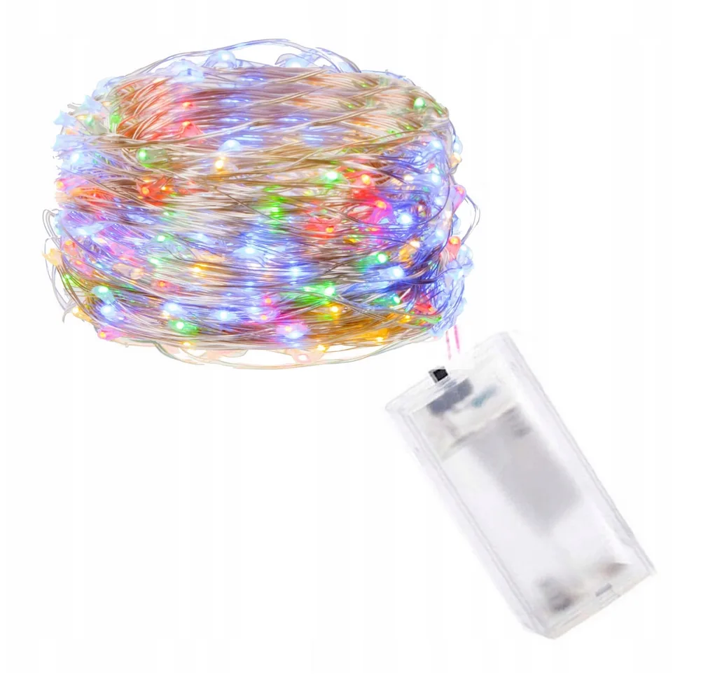 Lampki drucik druciki 50 led na baterie multikolor 2x aa