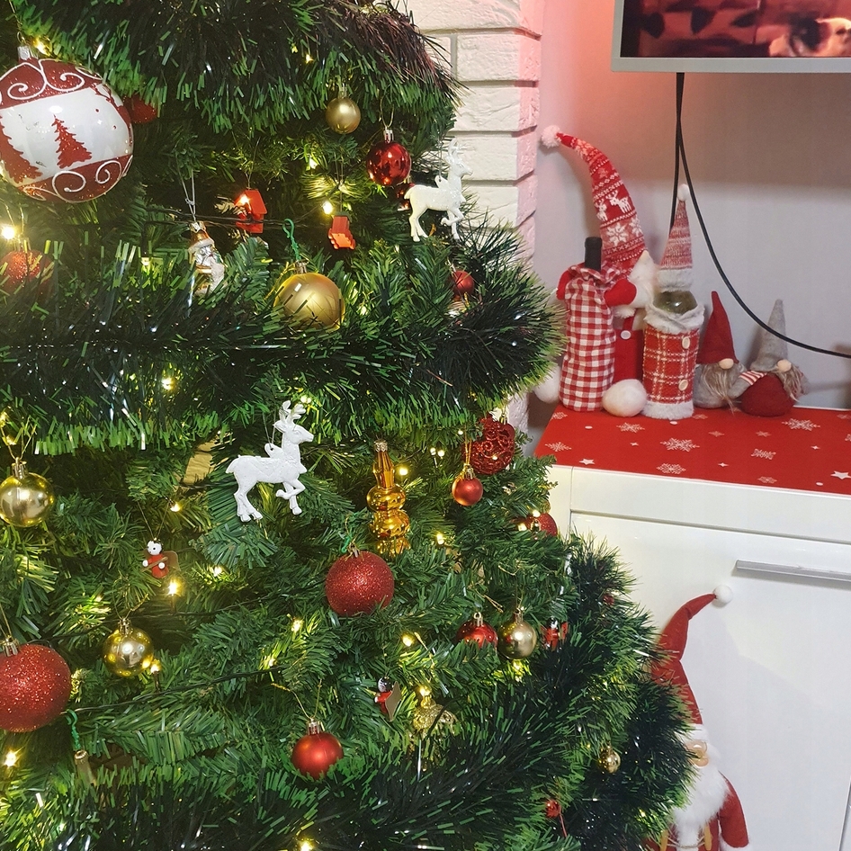 Łańcuch został wykonany z tworzywa sztucznego, dzięki czemu gałązki choinki nie uginają się pod jego ciężarem.