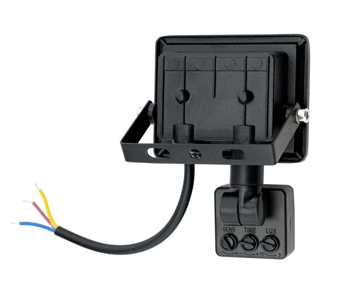 Wysokiej jakości naświetlacz LED z czujnikiem ruchu i zmierzchu w solidnej, aluminiowej obudowie.
