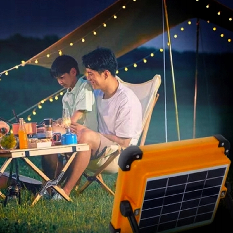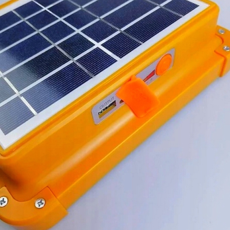 Lampa jest zasilana solarnie lub przez załączony do zestawu kabel USB-TYP C, halogen ma wbudowany akumulator.