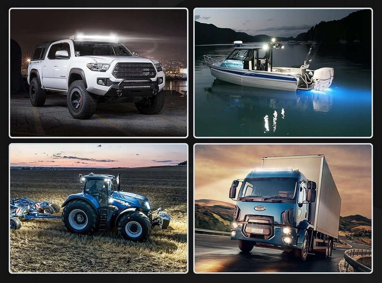Halogenowa lampa LED 720W to wysoce wydajne oświetlenie zaprojektowane do zastosowań w pojazdach, takich jak samochody osobowe, ciągniki, ciężarówki i inne maszyny rolnicze czy budowlane.