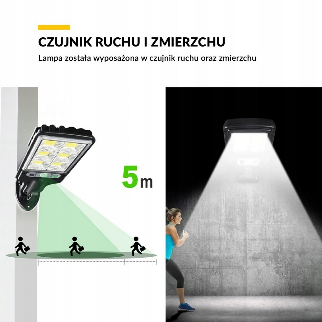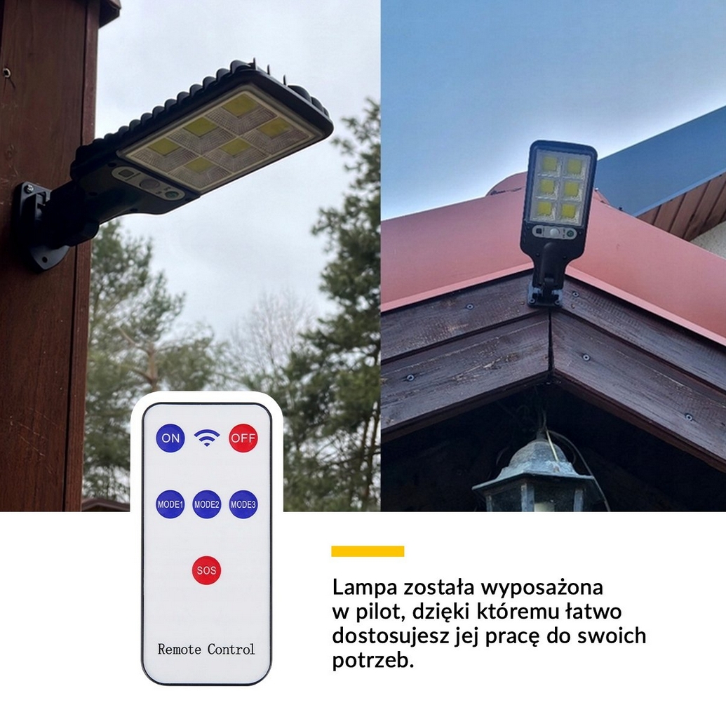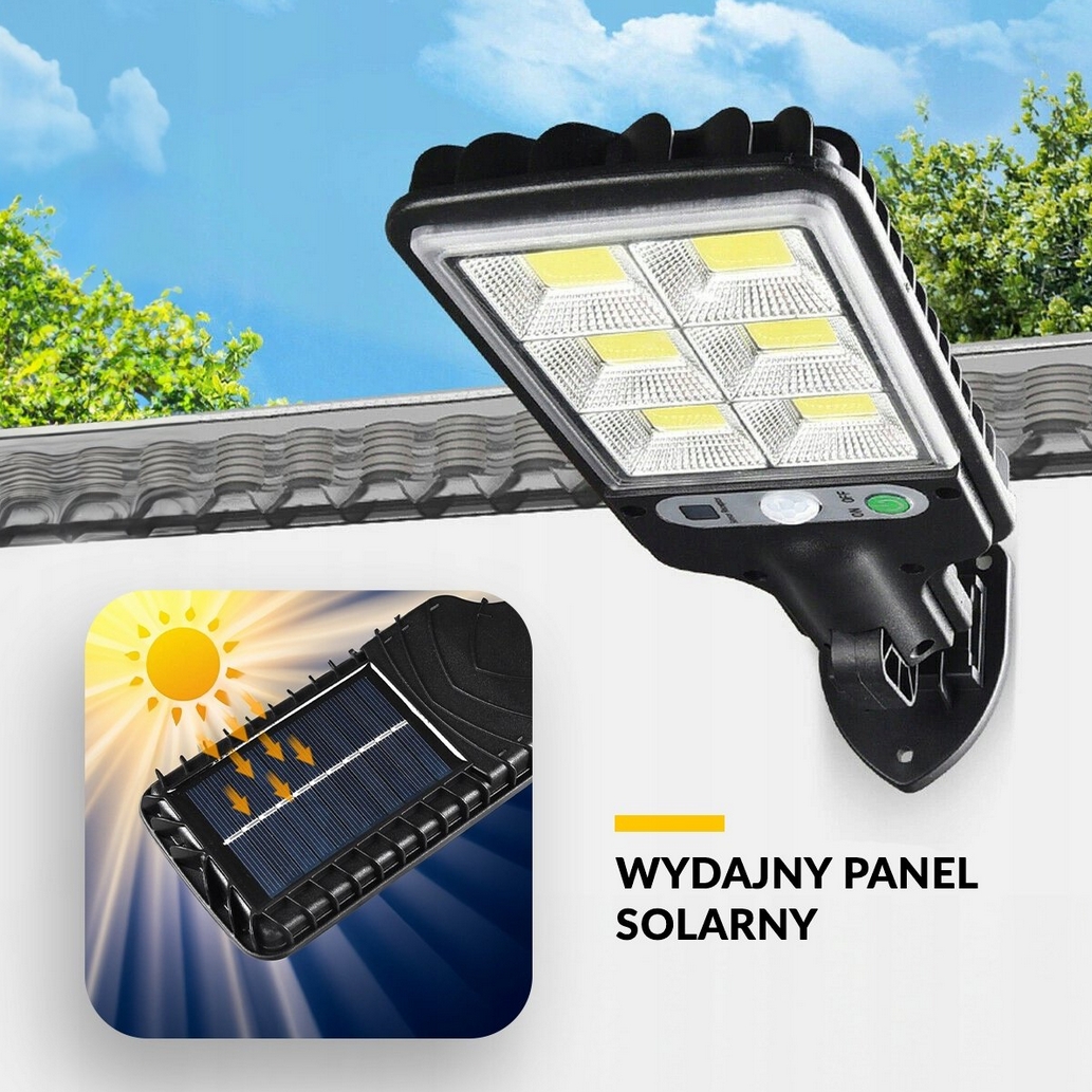 Lampa solarna o mocy 350w z czujnikiem zmierzchu oraz ruchu w zestawie z pilotem.