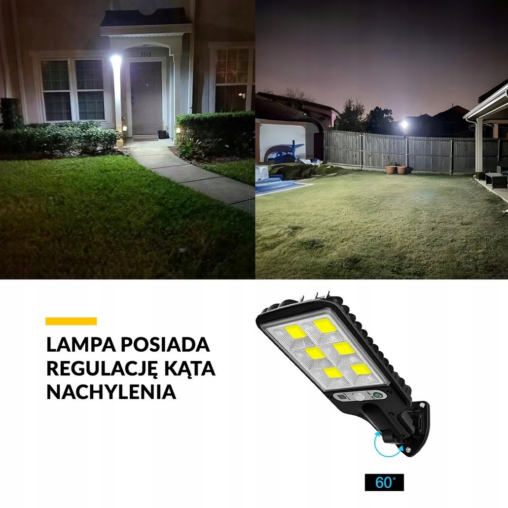 Lampa posiada regulację kąta nachylenia – pozwala to na dostosowanie ustawienia panelu solarnego do kąta padania promieni słonecznych.