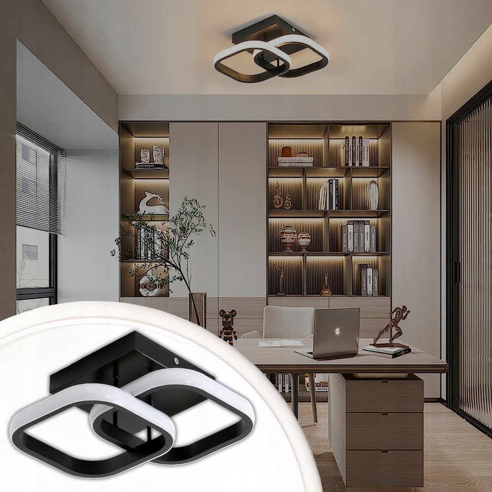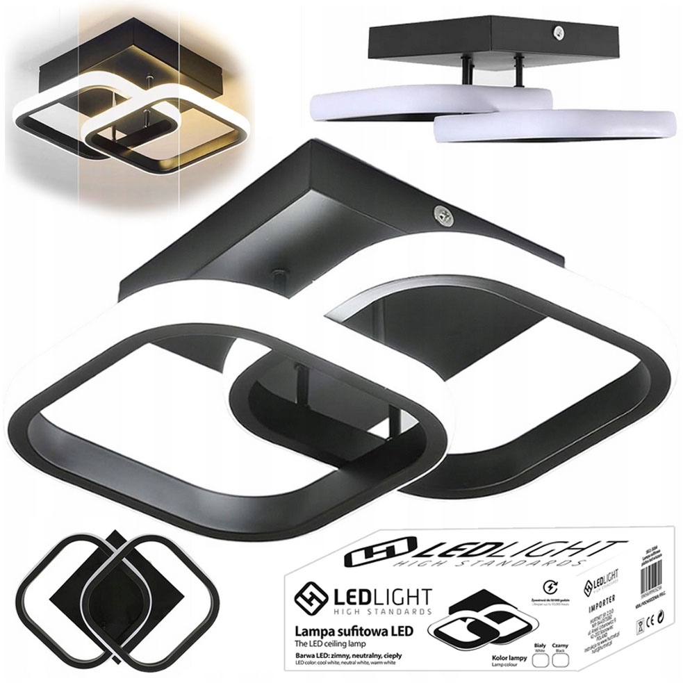 Lampa sufitowa plafon led wisząca czarna nowoczesna salon kuchnia sypialnia biały ciepły zimny 24w