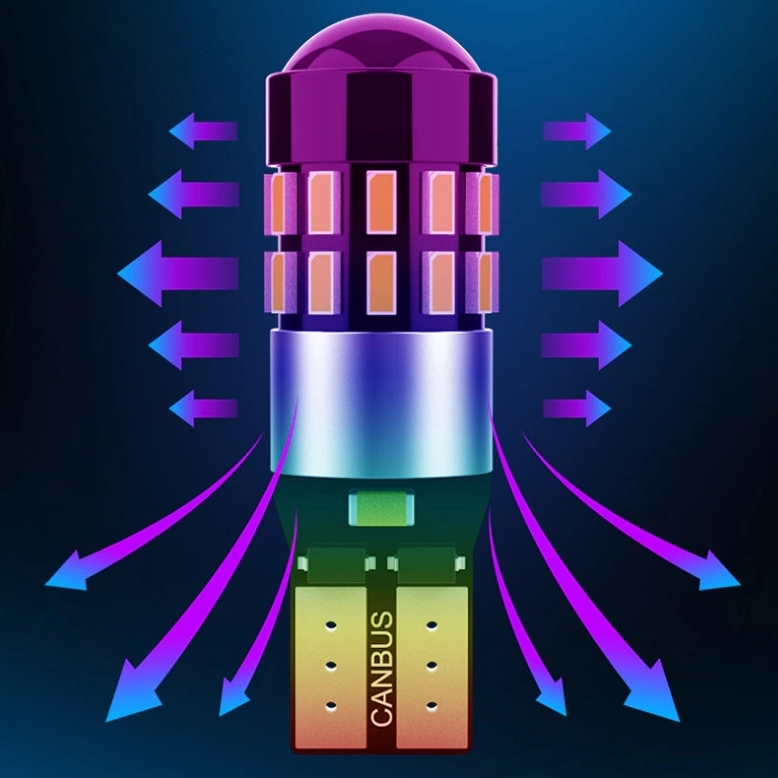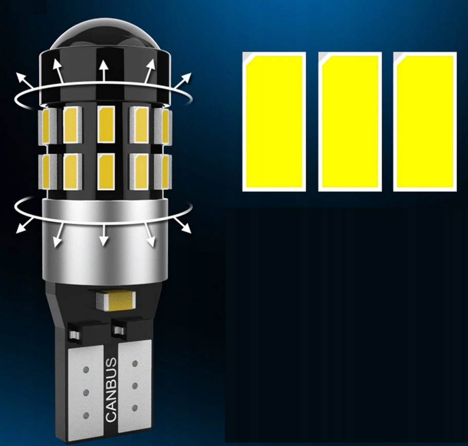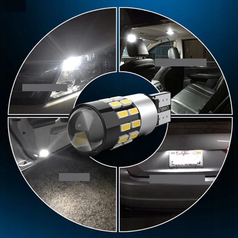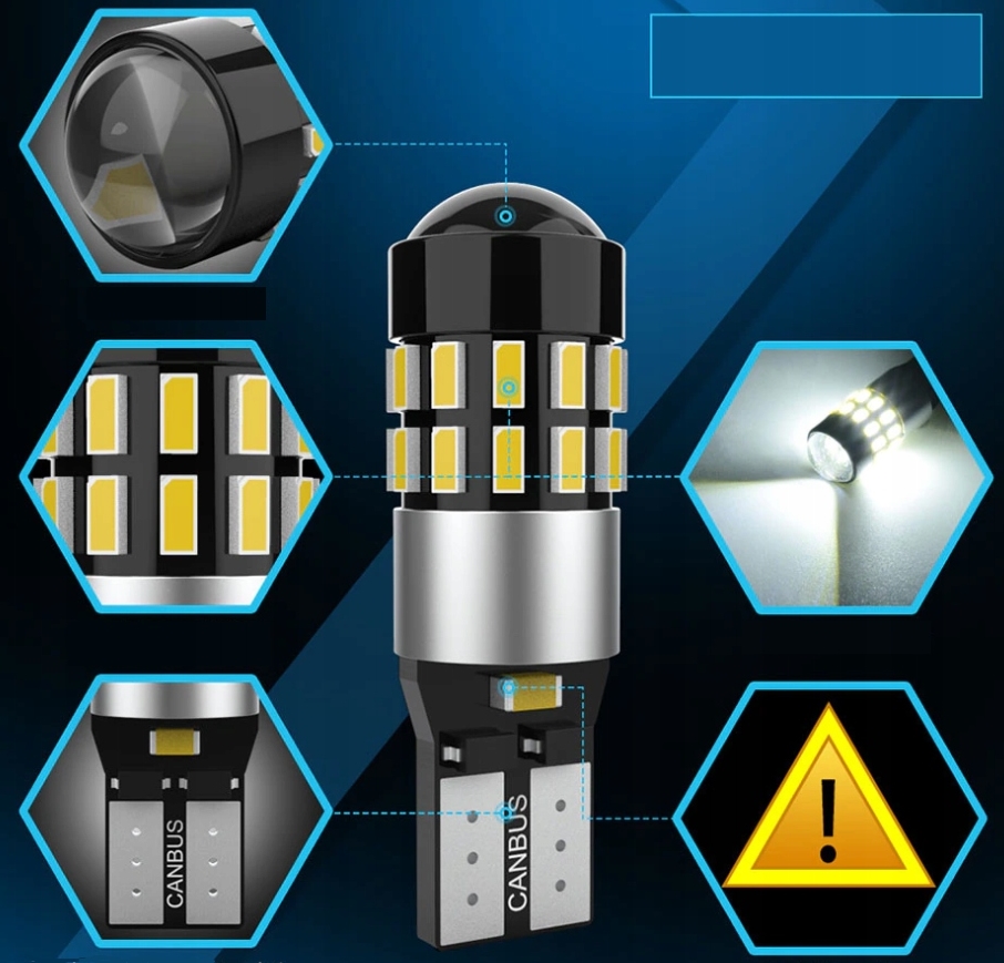 Wymiana zwykłej żarówki na W5W T10 30 LED SMD 3014 nie będzie powodować błędu “spalonej żarówki” na komputerze pokładowym w samochodzie.