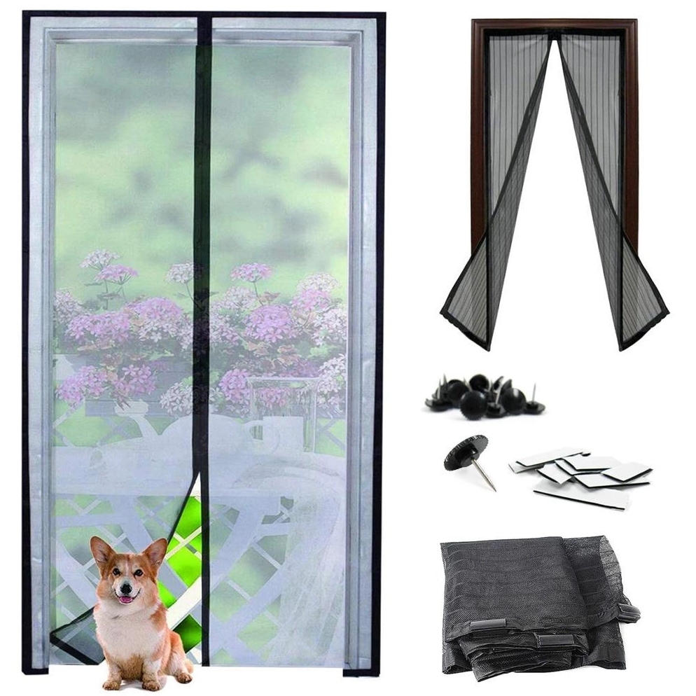 Duża, dwuczęściowa moskitiera magnetyczna na drzwi koloru czarnego z zestawem montażowym.