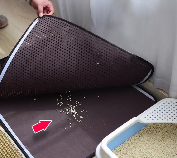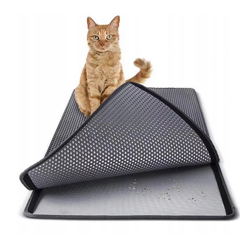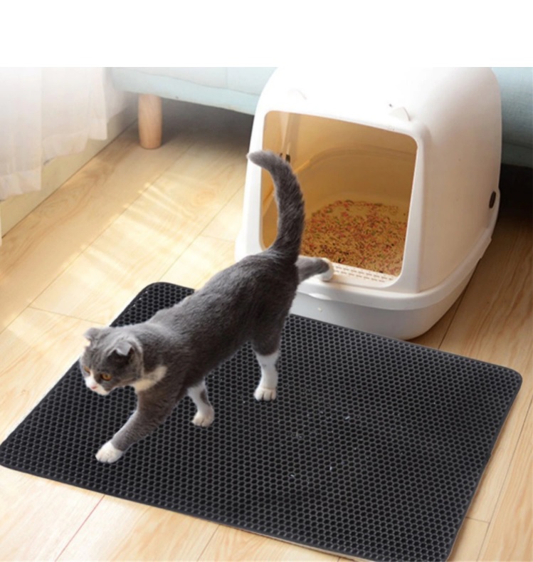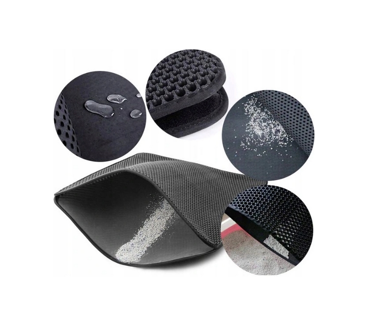 Dwuwarstwowa mata, dzięki zaprojektowanym otworom w kształcie plastrów miodu, wyłapuje resztki żwirku z łapek kota wychodzącego z kuwety.